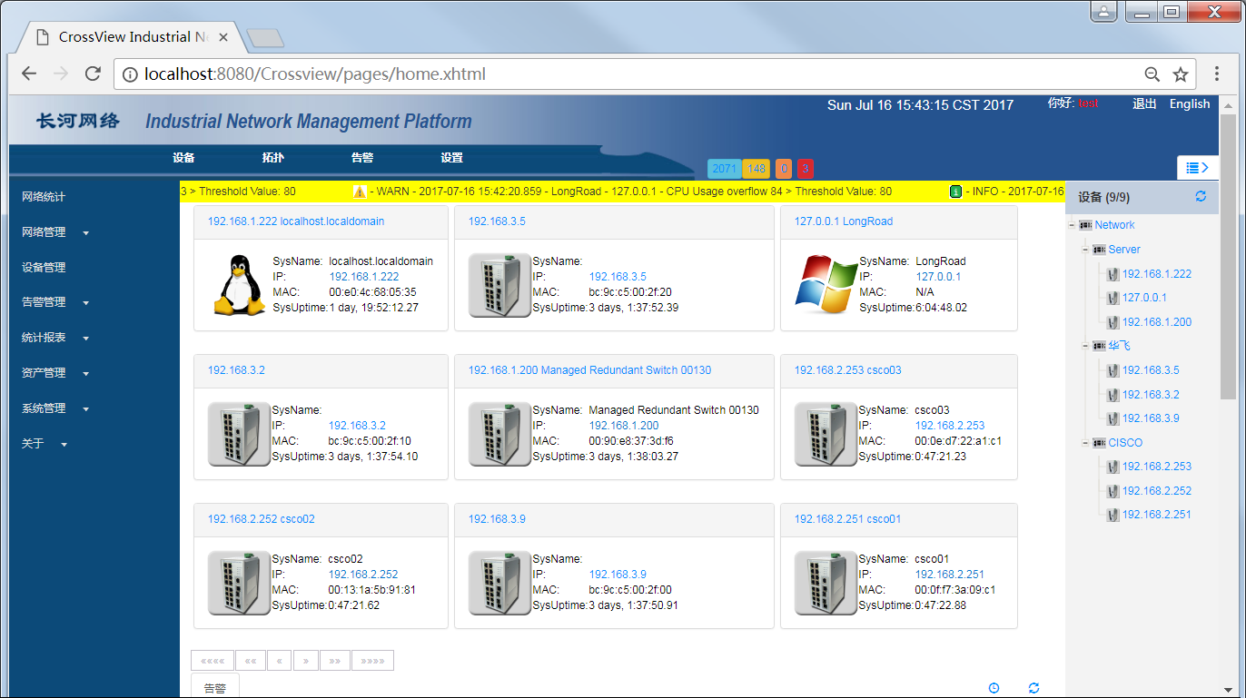 CrossView? 是基于Web的以太網(wǎng)網(wǎng)絡(luò )管理系統,同時(shí)它也是連接局域網(wǎng)絡(luò )和Internet的數據網(wǎng)關(guān)。CrossView? 是一款能夠幫助工業(yè)/企業(yè)用戶(hù)實(shí)時(shí)監控現場(chǎng)網(wǎng)絡(luò )運行狀況,采集設備/網(wǎng)絡(luò )信息,實(shí)現近遠程控制的軟硬件產(chǎn)品。利用CrossView? 的急速部署和高擴展性,用戶(hù)可以通過(guò)CrossView? 快速組建自己的監控云,實(shí)現跨地域的遠程網(wǎng)絡(luò )監控與管理,并可以利用采集的數據進(jìn)行統計與分析,實(shí)施可預見(jiàn)的、高效的、優(yōu)化的管理策略。