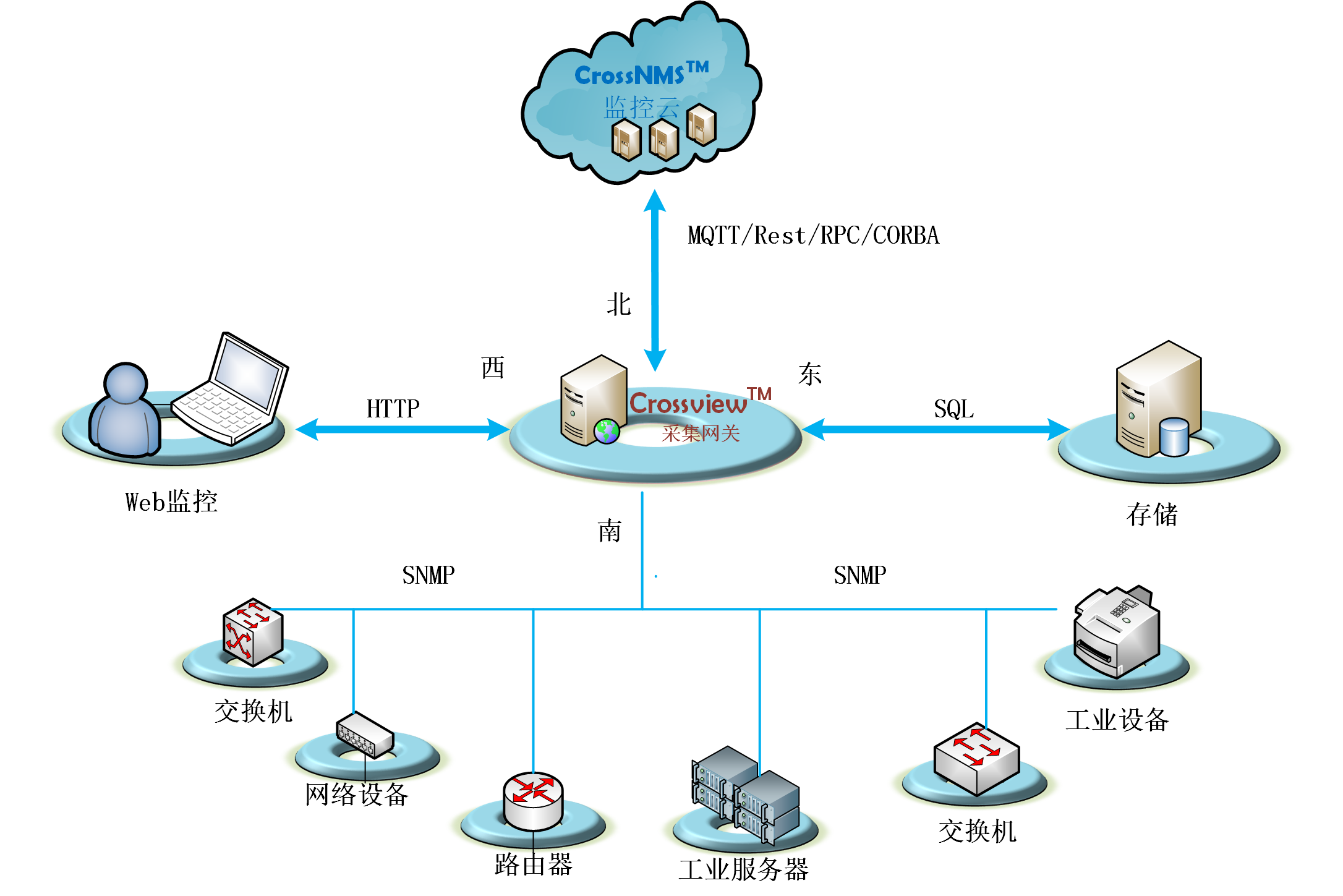 CrossView? 作為局域網(wǎng)絡(luò )的數據網(wǎng)關(guān),可以將“信息孤島” 與遠端的長(cháng)河網(wǎng)絡(luò )的監控云連接,實(shí)現數據的平滑傳輸??蓴U展的體系架構,使得CrossView?采集的數據像流水一樣匯聚到CrossNMS?云端,構成一幅 “小河有水大河滿(mǎn)”,"涓涓細流匯聚成海" 的壯美景觀(guān)。