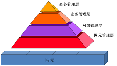 商務(wù)管理層:對企業(yè)運行的各個(gè)層面的事務(wù)進(jìn)行決策、分析和管理。 業(yè)務(wù)管理層:對網(wǎng)絡(luò )提供的業(yè)務(wù)進(jìn)行管理,例如業(yè)務(wù)管理、帳務(wù)管理、QoS保證等。 網(wǎng)絡(luò )管理層:對一個(gè)電信網(wǎng)絡(luò )整體進(jìn)行管理,包括路由控制、鏈路信息收集、帶寬分配等。 網(wǎng)元管理層:收集網(wǎng)元信息,管理和控制所有的網(wǎng)元。 網(wǎng)元層:網(wǎng)元即是被管對象,網(wǎng)絡(luò )設備。網(wǎng)元層的主要目的就是為不同的設備確定不同的管理接口。